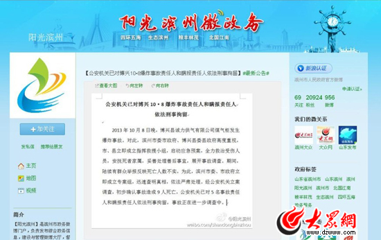 阳光滨州政务微博通报博兴10.8爆炸事故最新情况