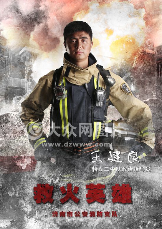 王建良,男,汉族,山东昌邑市人,中共党员,1983年6月出生,2001年12月入伍,现任济南市公安消防支队特勤大队二中队政治指导员,武警少校警衔。入伍10余来,他参与各类灭火抢险救援战斗1100多次,抢救被困群众80余人,荣立个人二等功2次,个人三等功3次,并多次受总队、市局、支队嘉奖。仅担任特勤二中队政治指导员一年,他就把中队带成一支特别能吃苦、特别能战斗,有红旗必夺、有第一必争的铁军中队,中队40多位战士对指导员王建良从心底服气。