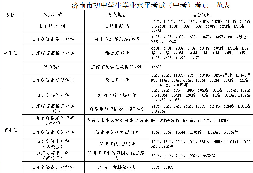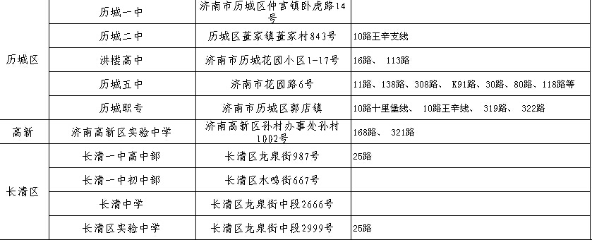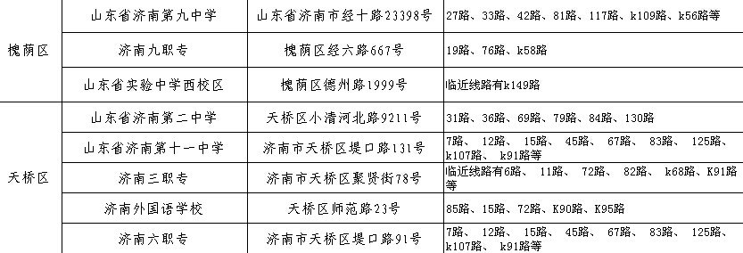 6路途经考点:山东省实验中学、济南三中(北校)、济南九中