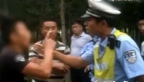 亲戚违章,德州奇葩男子阻挠公务骂交警,大喊“我儿子是国防生,怕你啊!”(视频截图)