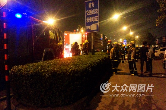 晚上23点40分左右,记者赶到火灾现场,在历山北路与北园大街交叉口,记者看到约停放有五六辆消防车。从历山北路往东的一条小路上,也停满了十余辆消防车。在着火仓库外围,公安干警已经临时封锁了过往道路,只允许消防人员通过。