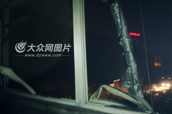 玻璃全被震碎,只剩一个窗框。