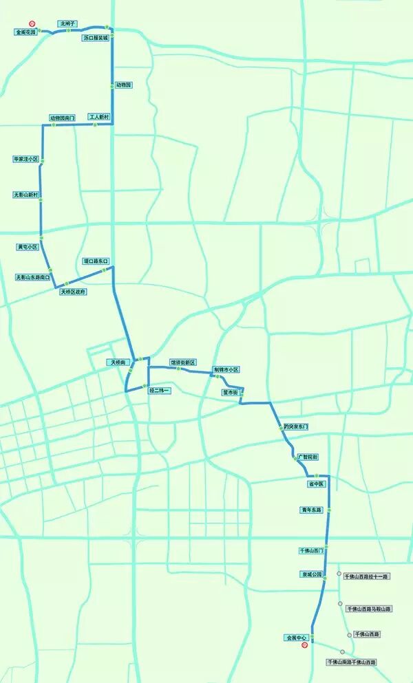 临时撤销马鞍山路舜耕路、千佛山西路、千佛山南路千佛山西路站点,临时将会展中心站点迁移至舜耕山庄路口处。