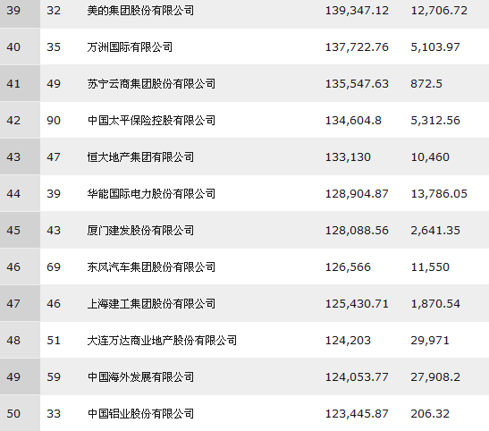 不过,值得一提的是,实体经济中也有不少亮点:美的成为了中资公司海外收购的先锋;腾讯领先BAT中的其他两家,首先突破1000亿元收入;中国宏桥仍然是全球铝业当中还在赚大钱的公司之一;网易成为排位上升最快的中国互联网公司;天合光能蝉联全球第一大光伏组件供应商。