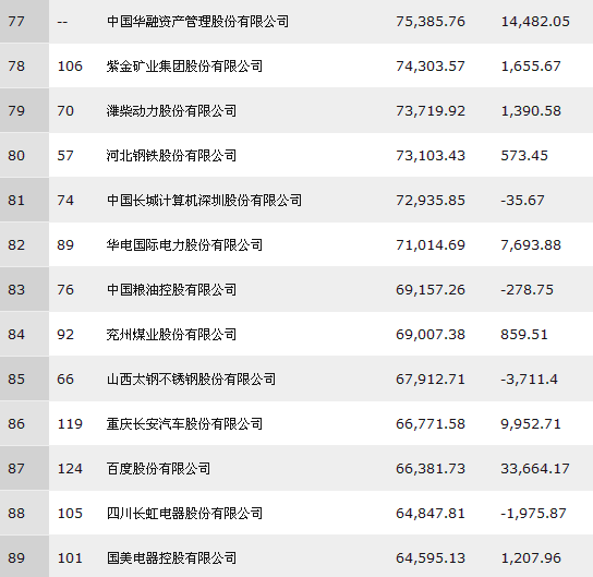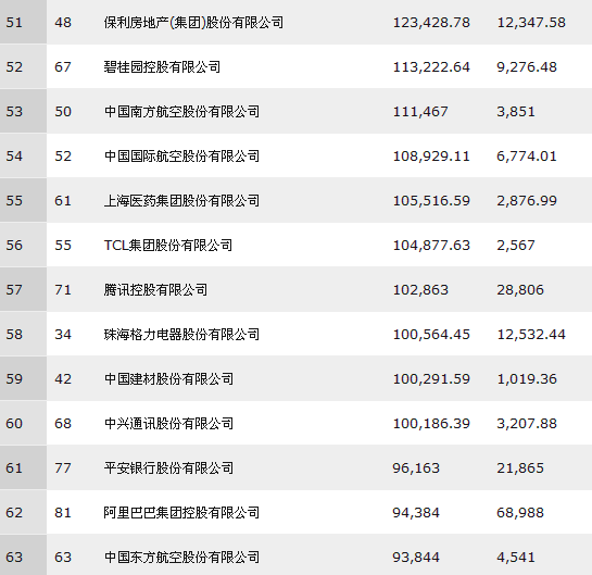 BAT的名词也都大幅前移。其中,腾讯由去年的第71位升至57位,阿里巴巴由第81位升至62位,百度由第124位升至87位。
