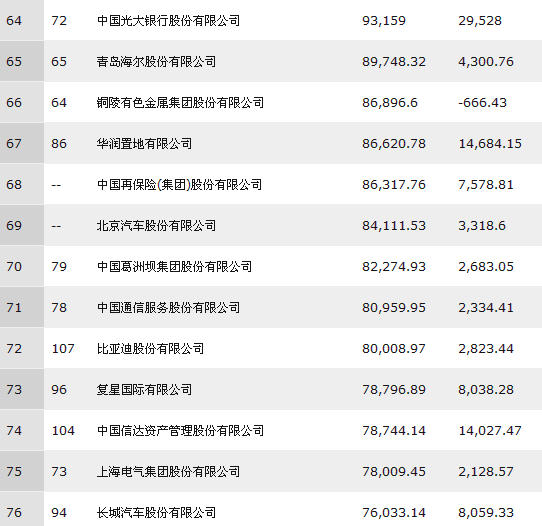 排行榜发布方《财富》(中文版)指出,本排行榜覆盖范围包括在中国境内外上市的所有中国公司,所依据数据为上市公司在各证券交易所正式披露信息。