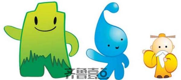 山东第六届文博会卡通吉祥物:“仁仁”、“智智”、“老夫子”(从左至右)。