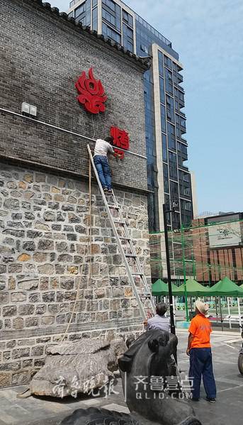 24日,齐鲁晚报·齐鲁壹点刊出了《文保单位金家大院要开烧烤店》报道,24日上午,金家大院属地大明湖街道办事处组织城管人员前去巡查,对外墙的三处烧烤店招牌进行了拆除,并向现在管理金家大院的文化公司下发了责令限期拆除通知书。据了解,该烧烤店建设时并未取得规划许可。