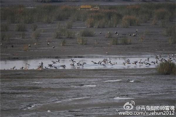 据专家介绍,每年胶州湾湿地都会出现10几只越冬大天鹅,由于湿地基本为养虾池,农田稀少,大天鹅不同于其他以鱼虾为食的鸟类,选择在盐碱湿地越冬,条件相对艰苦许多。