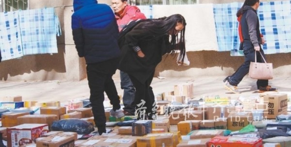 20日,在山东师范大学校园内,学生正在取快递。大学校园是各快递企业之间竞争的重要战场之一。齐鲁晚报·齐鲁壹点记者周青先摄