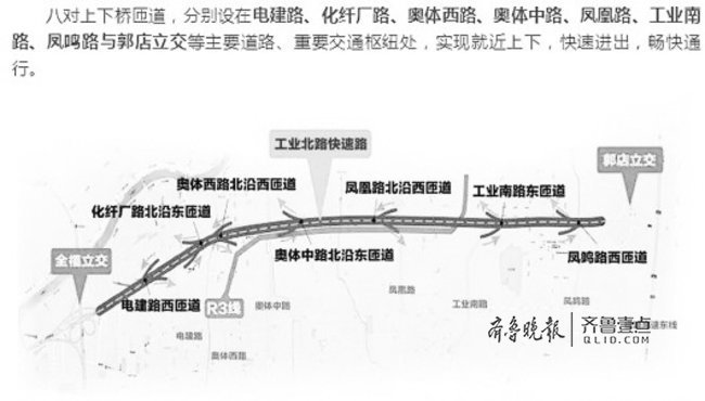 工业北路快速路西起北园大街全福立交,东至绕城高速东环线郭店立交,全长13.6公里,全线包括地面道路和高架路。2016年7月27日开工至今年10月底高架路通车,工期将不足15个月,这将刷新济南城区快速路建设速度。