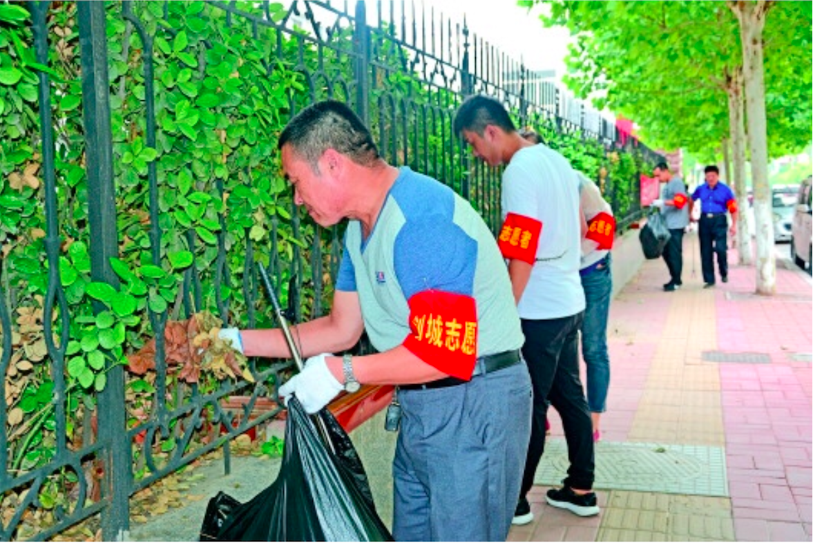 全民参与创城,志愿者在清理环境卫生。(资料片)
