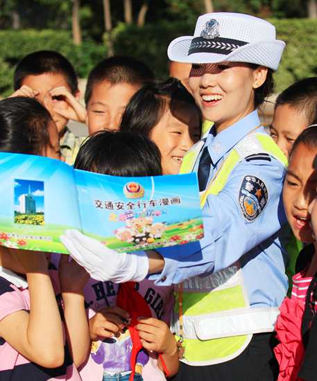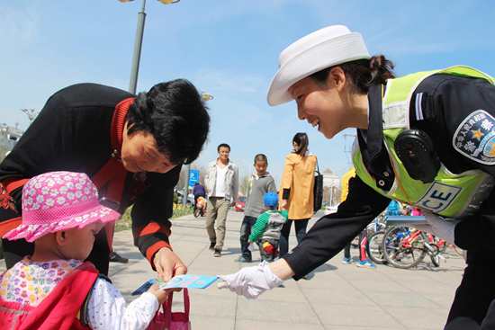 在做好校园交通安全宣传教育工作的同时,封艳红多次带领队员们走访周边单位、商户,进门入户开展交通安全宣传教育活动,带动大家共同参与到维护校园周边道路交通秩序的工作中来,逐渐形成了“交警主导、学校支持、社会参与”的良好局面。
