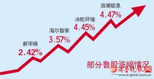 就个股而言,除两市200多只鲁股188只飘红,仅12只走绿外,在山东自贸区获批消息的刺激下,前述三大片区内,多只概念股表现相对活跃。