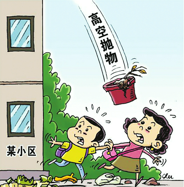 高空抛物坠物伤人事件频发,严重危害人民群众生命财产安全。随手一扔,引发的后果往往不堪设想。前面讲述的事例好在没有引发严重人员伤亡,但并不是每一起事件都会如此幸运——今年6月,江苏省昆山市和广东省深圳市,先后有两名男童不幸被高空坠落的玻璃砸中身亡。从高空抛下的物体小到烟头、水果和各种垃圾,大到酒瓶、菜刀和玻璃窗……一些看似没有危害的物品,从高处坠落的后果往往超出大家的认知。实验结果表明,20克重的砝码从约4米高处下落能把塑料盒子砸碎,50克重的砝码从6楼扔下能把实木抽屉砸坏,一个鸡蛋的重量大概相当于60克重的砝码,从高空中坠落如果砸在人的头上,后果可想而知。
