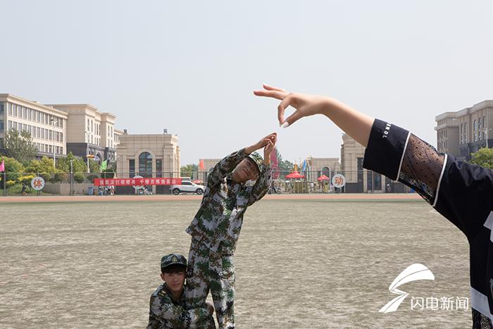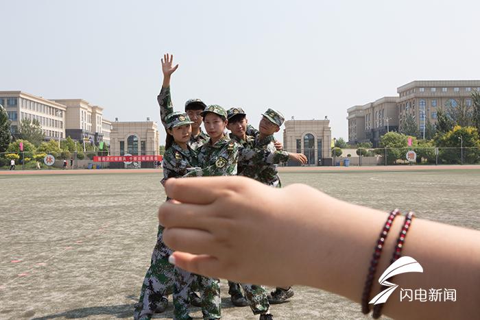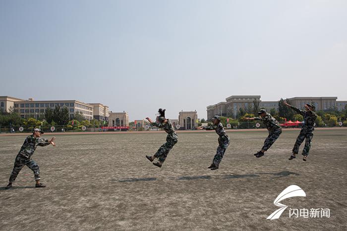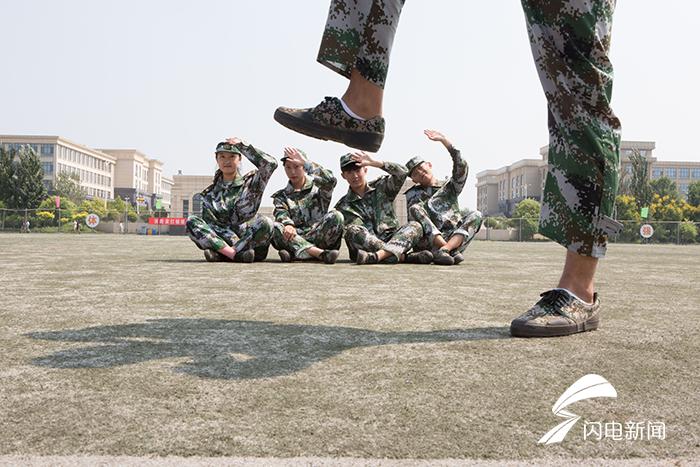 齐鲁网德州9月6日讯 9月5日,山东德州学院大一新生在校园内拍摄军训创意照。