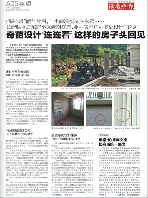 至于房屋设计中存在的相关问题,“绿化填土下陷、屋内渗水的问题确实存在,我们已经责令施工单位全部整改,现在基本整改完毕了。”上述负责人说,对于业主反映的室内水电暖燃气布管不科学、使用不方便等问题,确实是按照设计施工,如果核查后发现的确影响使用功能,会统一进行整改。