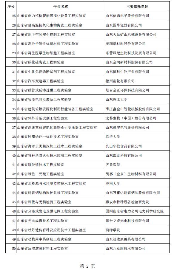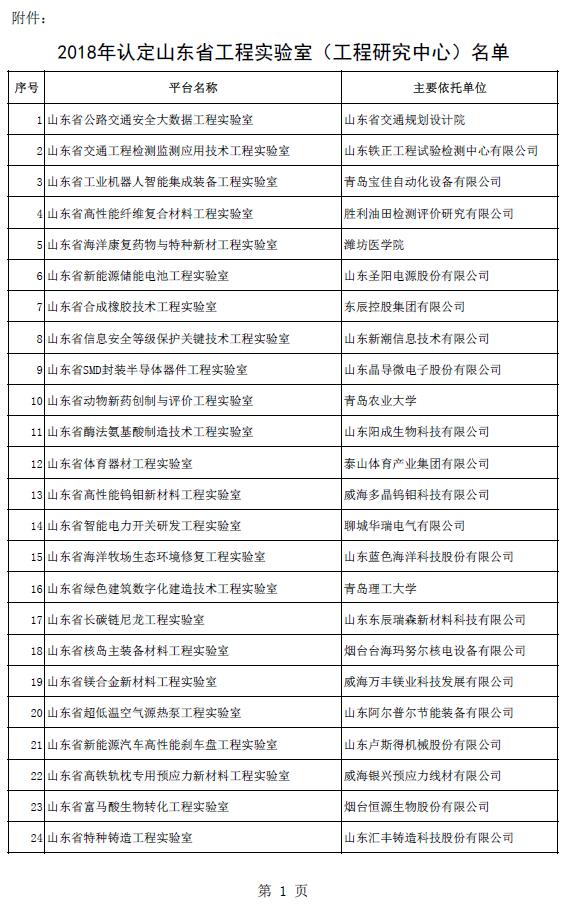 附件:2018年认定山东省工程实验室(工程研究中心)名单