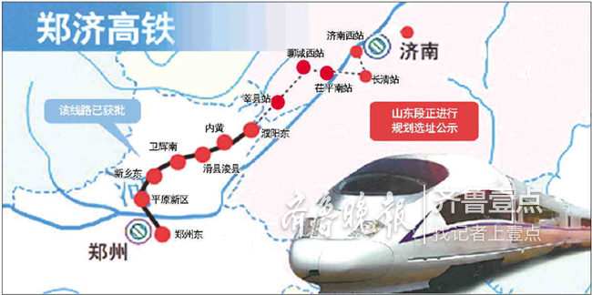 据了解,目前,新建铁路郑州至济南铁路工程山东段的选址已经项目所在地市、县两级城乡规划主管部门审查,有关部门出具了支持文件,根据《山东省城乡规划条例》和《关于