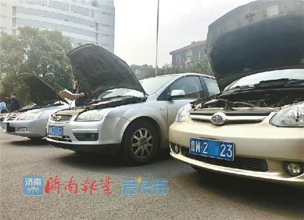16日,在山东省公安厅车管所,停放着待检验的换牌车辆。 记者王汗冰 摄