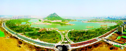 华山生态湿地公园是华山片区的重要组成部分,占地面积约9300亩,最终形成水域面积约3700亩。公园按照“泉城新名胜、国家5A级景区”的标准来规划建设,综合山、泉、湖、河、城、人、文、娱、景、绿等要素,运用传统园林手法打造的新的旅游景观和城市名片。(资料片)