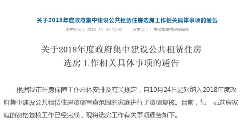 11月13日,济南市住房保障和房产管理局发布《关于2018年度政府集中建设公共租赁住房选房工作相关具体事项的通告》。