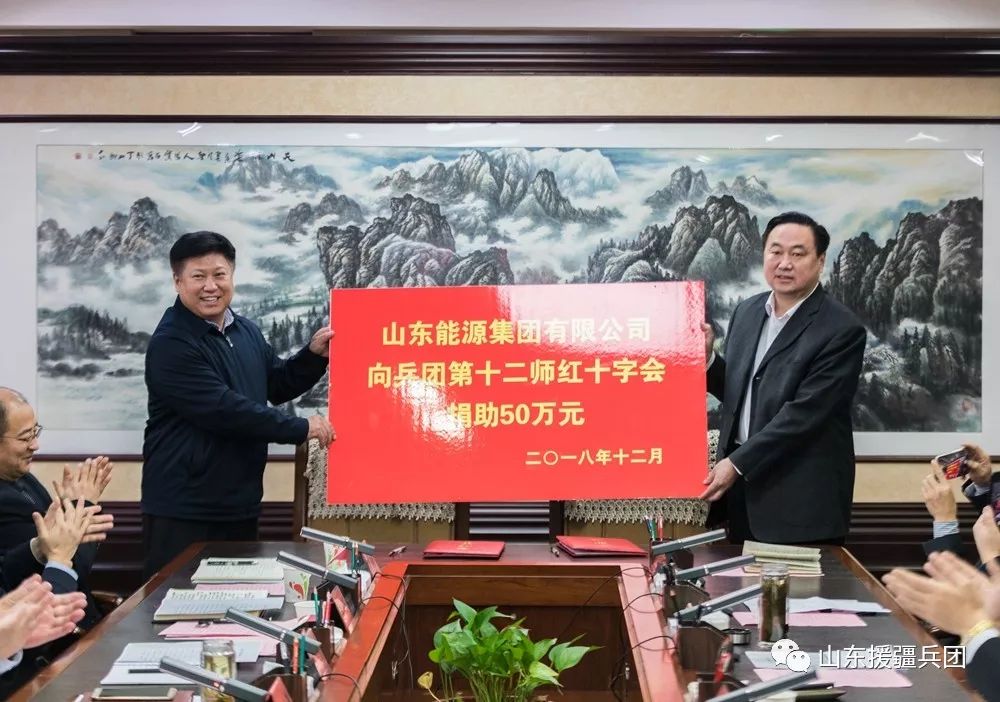 座谈会上还举行了十二师与山东省国资委促进国企国资合作框架签约仪式。山东省能源集团向十二师红十字会捐赠50万元,罗贵宝代表十二师接受了捐赠,并向山东省能源集团颁发了《十二师红十字会荣誉团体会员证书》。
