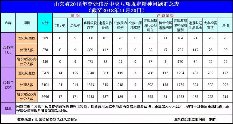 2018年11月,全省各级纪检监察机关查处违反中央八项规定精神问题509起,处理678人,给予党纪政务处分480人。