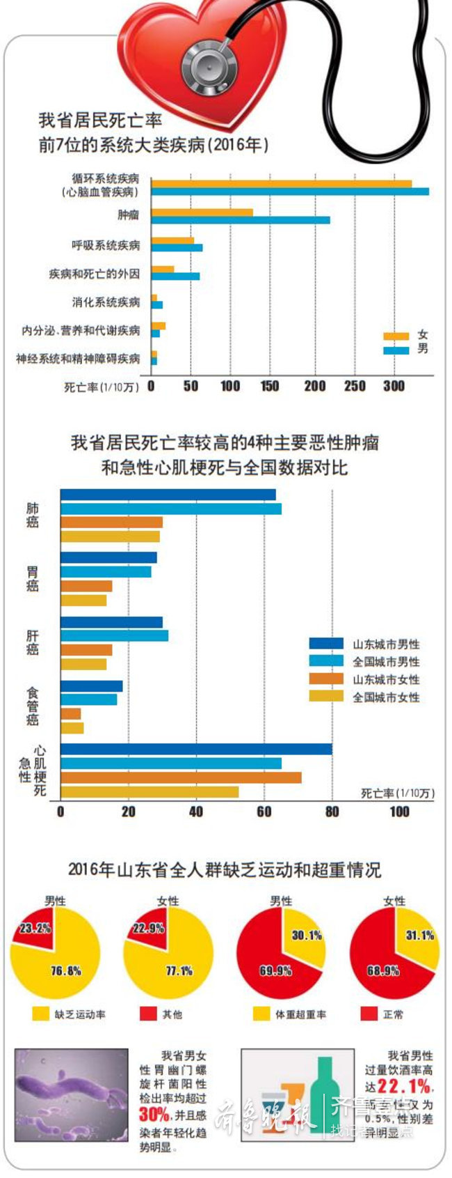 12月25日,山东省发布全人群全生命周期健康状况和卫生健康服务保障研究报告,充分发挥省域全民健康信息平台优势,首次启用大数据手段,对我省居民主要健康危险因素、面临的主要疾病负担等进行了全方位的透视。