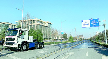 1月22日,一辆无人驾驶卡车在济南高新区路测。