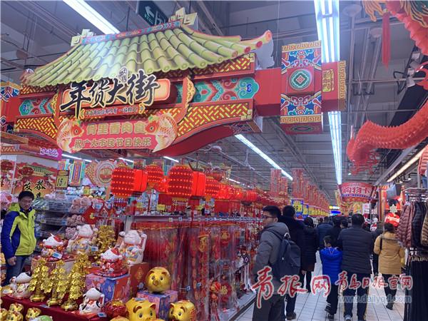 ▲春节临近,岛城各大商超年味十足。多数商超都设置了“年货街”,把畅销货品摆放在过道位置,方便顾客挑选。各类干果、海鲜、蔬菜货源充足,琳琅满目。不少市民前来采购,备货迎新年。刘 栋 摄