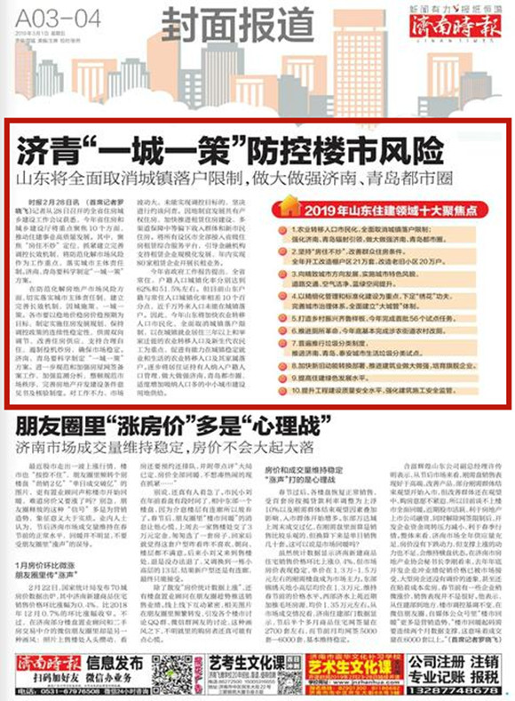 在防范化解房地产市场风险方面,切实落实城市主体责任制,建立完善长效机制,因城施策、一城一策。各市要以稳地价稳房价稳预期为目标,制定实施住房发展规划,保持调控政策的连续性稳定性,供需双向调节,改善住房供应,支持合理自住,遏制投机炒房,确保市场稳定。济南、青岛要科学制定“一城一策”方案。进一步规范和加强房屋网签备案工作,加强监测分析,整顿规范市场秩序,完善房地产开发建设条件意见书及核验制度。对工作不力、市场波动大、未能实现调控目标的,坚决进行约谈问责。因地制宜发展共有产权住房,加快推进租赁住房建设,多渠道保障中等偏下收入群体和新市民住房。将所有设区市全部接入省级住房租赁综合服务平台,引导金融机构支持租赁企业规模化发展,年内实现80家租赁企业开展长租业务。