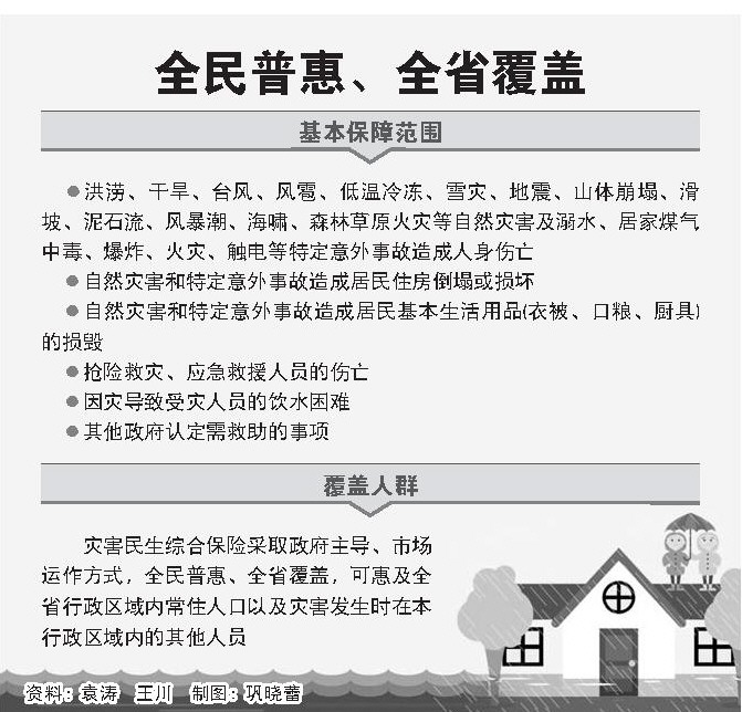 根据部署,此次我省在全省开展的灾害民生综合保险采取政府主导、市场运作方式,全民普惠、全省覆盖,可惠及全省行政区域内常住人口以及灾害发生时在本行政区域内的其他人员。该保险实行“五统一、三补充”的运行机制,即统一基本保障范围、统一基本保障额度、统一基本保险条款、统一承保机构准入标准、统一定期调整基准费率,各设区的市在省确定的“五统一”的基础上,可根据实际情况补充保费缴纳标准、补充保障范围、补充保障额度。