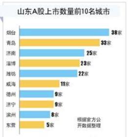 截至目前,在山东16市,A股上市公司实现了全覆盖。烟台、青岛、济南、淄博、潍坊拥有A股上市公司数量均超过20家。冠军城市仍旧是烟台,总数达到38家。亚军城市青岛,则拥有33家A股上市公司。