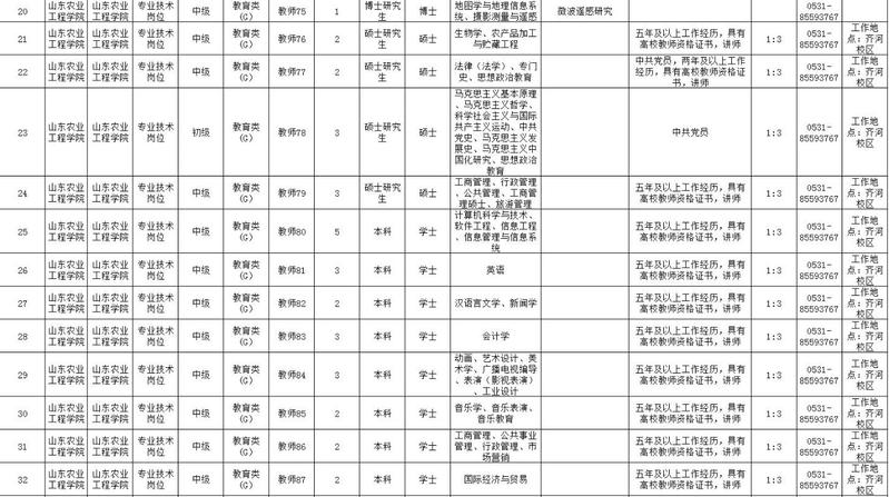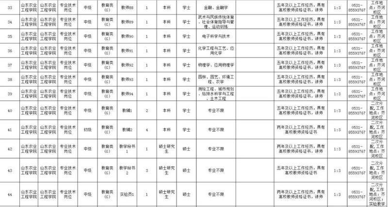 山东农业工程学院拟面向社会公开招聘专业技术岗位工作人员92人,其中,高级岗位15人,中级岗位62人,初级岗位10人,管理七级以下岗位5人。
