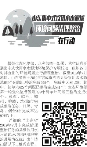 详细的“山东省2019年7月未完成清理整治任务的县级饮用水水源地环境问题清理整治进展情况统计表”请扫描二维码查看。