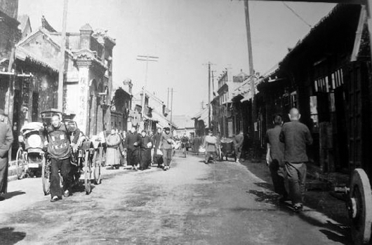 普利街,西接商埠的东西主干道经二路,东经估衣市街(现共青团路),与内城西门泺源门相通,成为往来于老城与商埠的交通要道。一时间,人流如织,摩肩接踵。