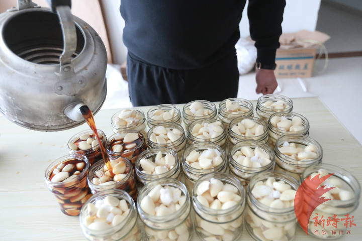 1月2日下午,新时报记者来到位于商河县白桥镇,白桥镇是远近闻名的中国大蒜之乡,镇上有大大小小20家生产腊八蒜的企业或作坊,这里制作的腊八蒜将销往全国各地。