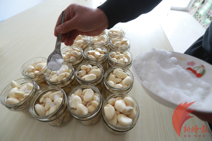 总经理王小亮介绍,与一些酱菜坊的“速成”腌制法不同,他们采用传统古法,纯手工腌制腊八蒜。“完全使用人工扒蒜,然后洗净、晾干,直接分装进玻璃容器,再倒入酿造米醋,加入适量白砂糖,罐装前每瓶再点两滴香油,在15-20摄氏度的环境中腌制7天即可食用。”他说,这样腌出的蒜色泽翠绿,口感脆甜,很受市场欢迎。”