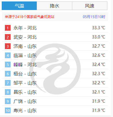 根据中央气象台的2418个国家级气象观测站的数据,15日8时,济南气温一马当先、直接冲到全国第一。15日10时,全国最高温度前10个城市中,山东的城市就有7个。