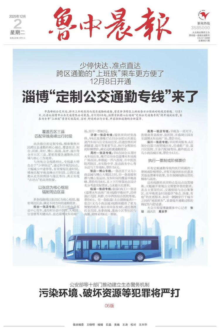 早高峰的公交车站,挤不上车的焦灼与漫长通勤的疲惫,曾是许多跨区上班族每日必须面对的现实难题。12月1日,记者从淄博市公共交通有限公司获悉,自12月8日起,淄博首批精心打造的“定制公交通勤专线”将正式开通试运营,旨在为全市“上班族”量身定制高效、省时、舒适的出行方案,开启轻松通勤的全新篇章。