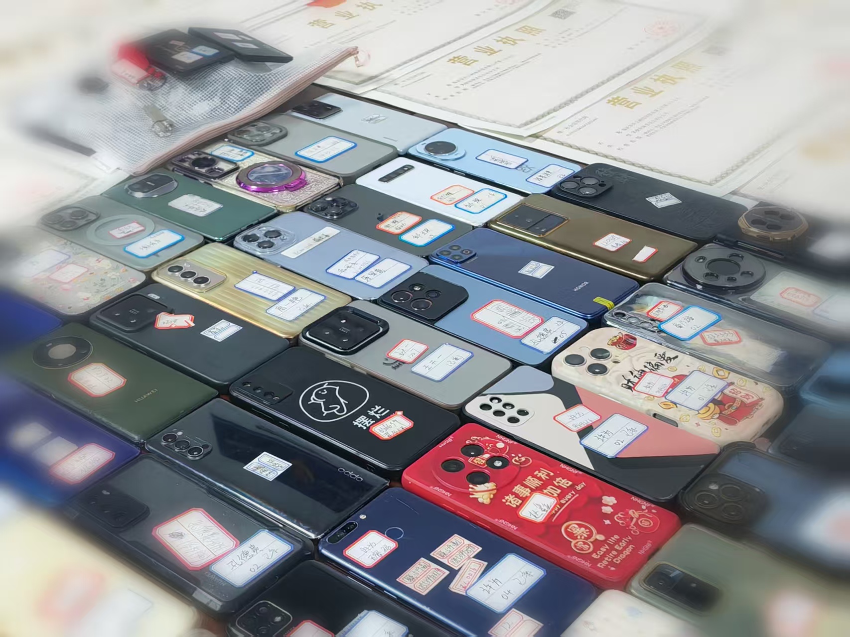 走进鱼台县公安局办案室,百十部型号各异的手机和19张营业执照摆在桌上,手机背后贴着使用者的姓名;30多台涉案电脑摆放一地,有些电脑还能够登上客服后台,没来得及删除的聊天记录仍然可见。