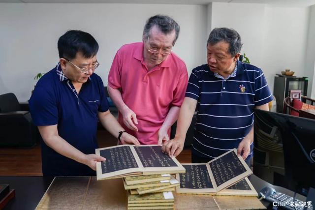 两位教授作为著名画家,对书法的兴趣和造诣也丝毫不逊,提及翰墨更是兴致难挡,与梁洪文董事长共同观摩赏析了中国书法的“圣经”《大观帖》。