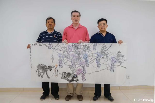 两位教授笔下的画虽只有几朵紫藤花瓣与卧牛相连,却俨然一副紧密相连的景色和意境,让人感叹国画艺术的奇妙。